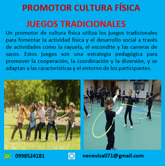 Un promotor de cultura física utiliza los juegos tradicionales para fomentar la actividad física y el desarrollo social a través de actividades como la rayuela, el escondite y las carreras de sacos. Estos juegos son una estrategia pedagógica para promover la cooperación, la coordinación y la diversión, y se adaptan a las características y el entorno de los participantes.