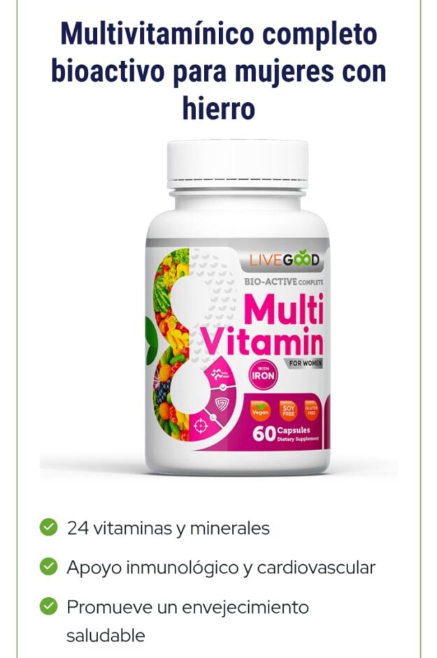 Nuestro multivitamínico completo bioactivo LiveGood para mujeres está formulado estratégicamente con ingredientes de la más alta calidad en dosis óptimas para brindarle a su cuerpo 24 vitaminas y minerales diferentes que la mayoría de las personas no obtienen completamente de sus alimentos… todo por un precio que todos pueden pagar.
